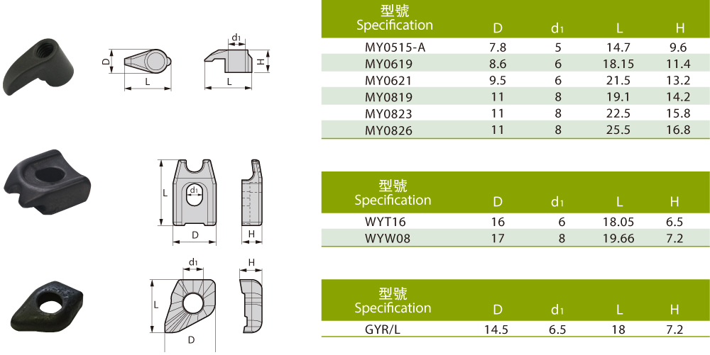 · 鏜刀片 · 銑刀片 · 普通車刀片 · 切槽車刀片 · 螺紋車刀片 |