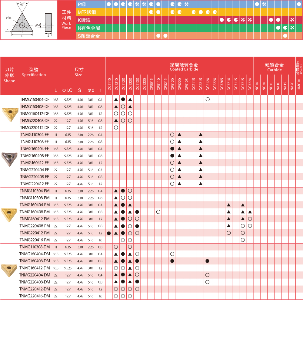 | Insert Grades - Turning 車(chē)削刀片牌號(hào)一覽表 |