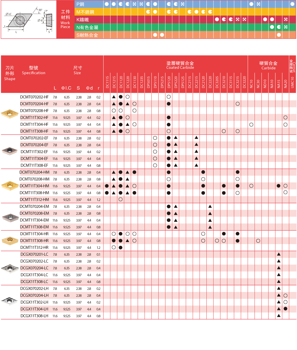 車削刀片牌號一覽表