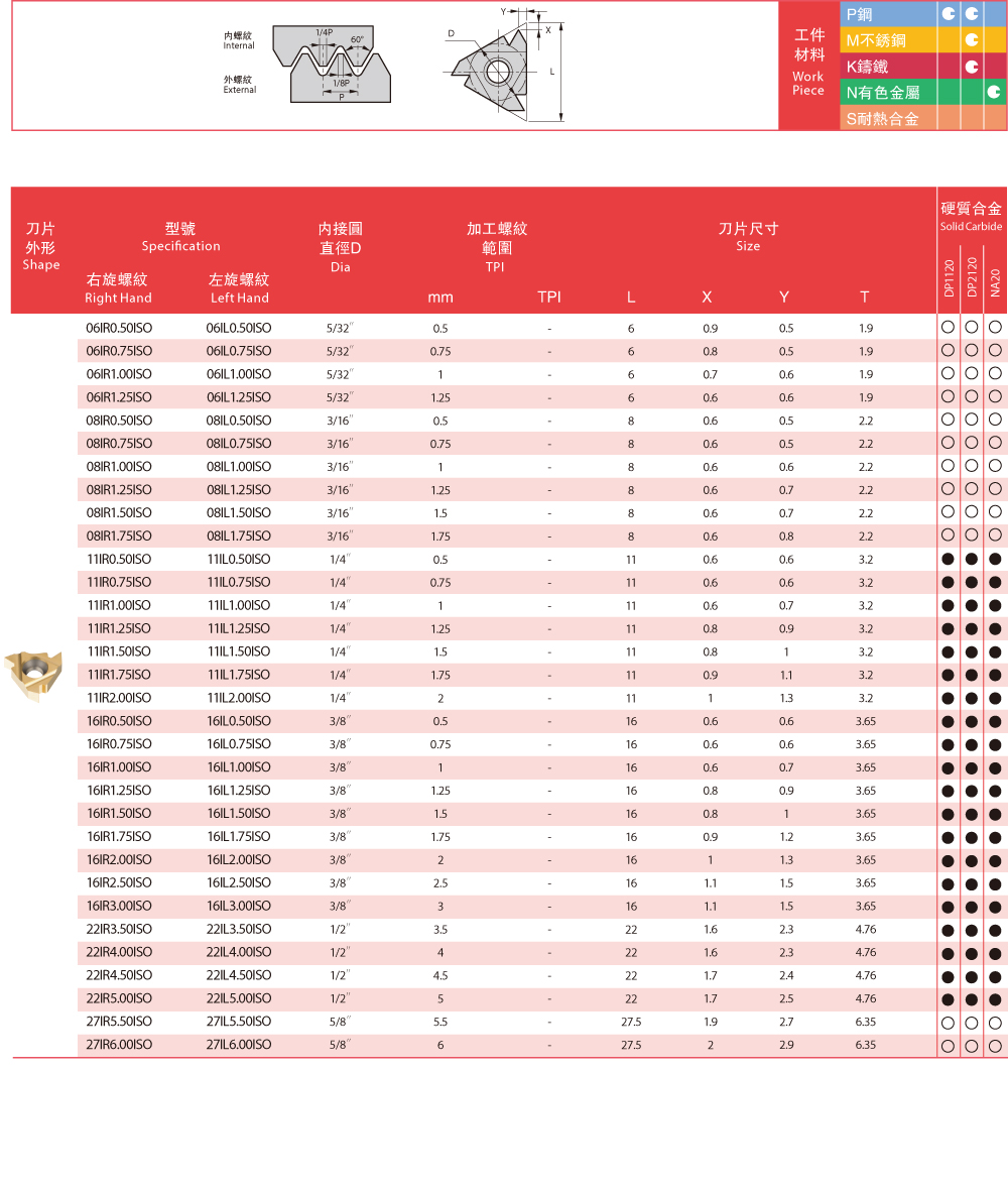 | ISO Metric Full Profile ISO標準型螺紋刀片 |