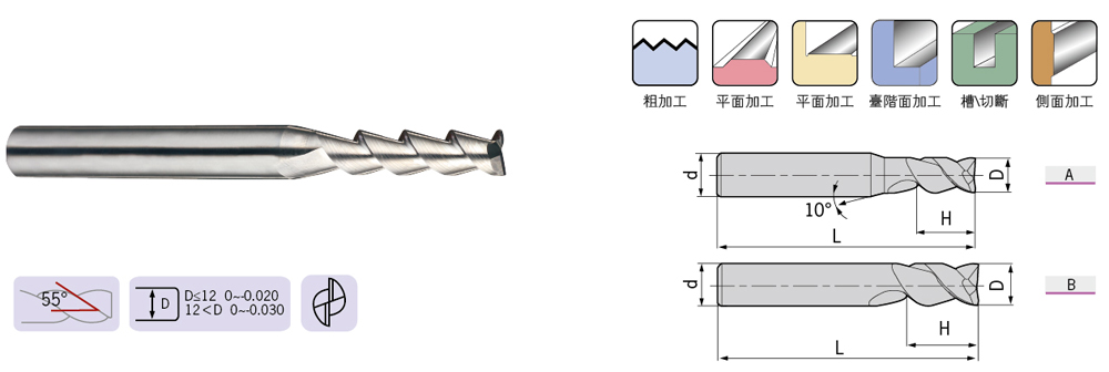 · DP高性能通用加工立銑刀 · DG通用加工立銑刀 · DH高硬度加工立銑刀 · DL鋁加工立銑刀 |