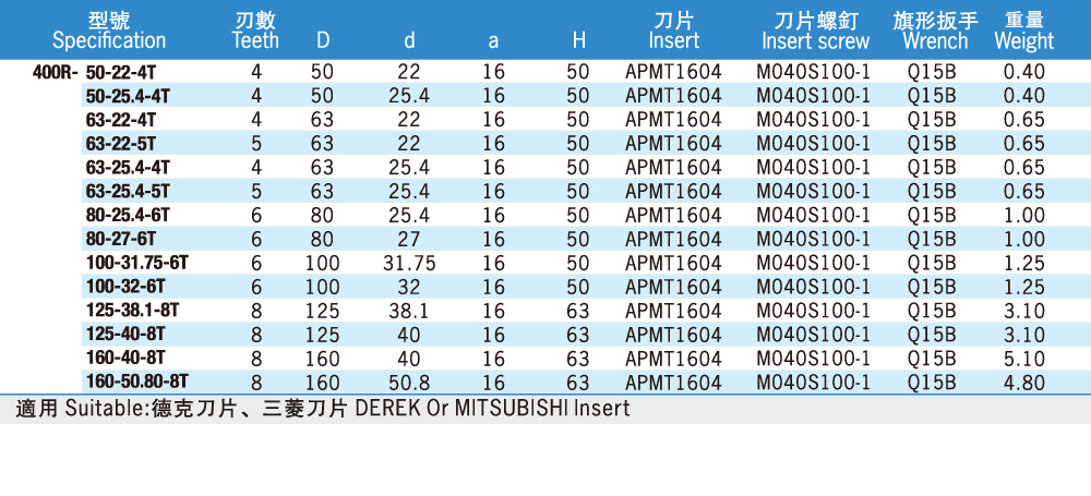 400R清角平面銑刀頭