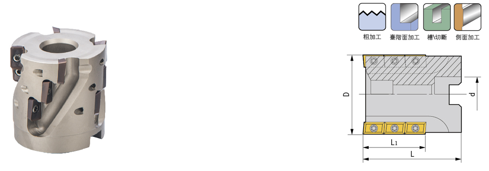 · 可換式銑刀頭 · 可轉位銑刀桿 · 倒角刀 · 可轉位面銑刀 · 鋁合金面銑刀 · 玉米銑刀 · 三面刃側銑刀 |